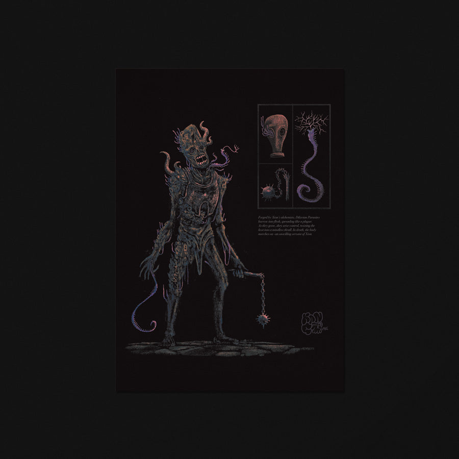 Forged by Xion’s alchemists, Diluvian Parasites burrow into flesh, spreading like a plague. As they grow, they seize control, twisting the host into a mindless thrall. In death, the body marches on—an unwilling servant of Xion.
